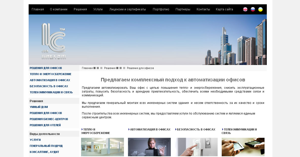 Завдання: створити корпоративний сайт компанії Вид робіт: розробка CMS (php&mysql), розробка та верстка шаблонів сайту, наповнення інформацією