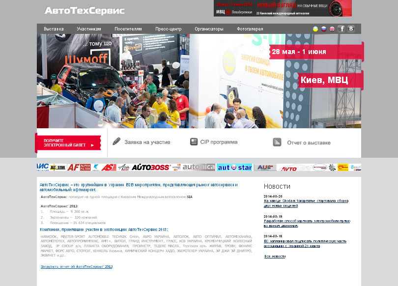 Сайт для Київського Міжнародного Автосалону Завдання: створити сайт-візитку для виставки на основі WordPress. Вид робіт: розробка макету, верстка шаблону, додавання шаблону WordPress. Сайт виставки Trans Ukraine Завдання: створити сайт виставки Технології: Bootstrap, php, html, css. Розроблена спеціальна CMS. Сайт виставки Автотехсервіс Завдання: розробити новий сайт для виставки “Автотехсервіс” Вид робіт: […]