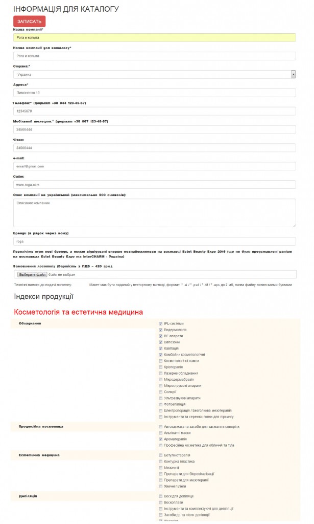 Завдання: розробити особистий кабінет учасника виставки, в якому експоненти могли б самостійно розміщувати всю необхідну інформацію до каталогу виставки. Розміщена інформація потім перевіряється координатором виставки і вивантажується в текстовий документ відповідно до вимог верстальника каталогу.